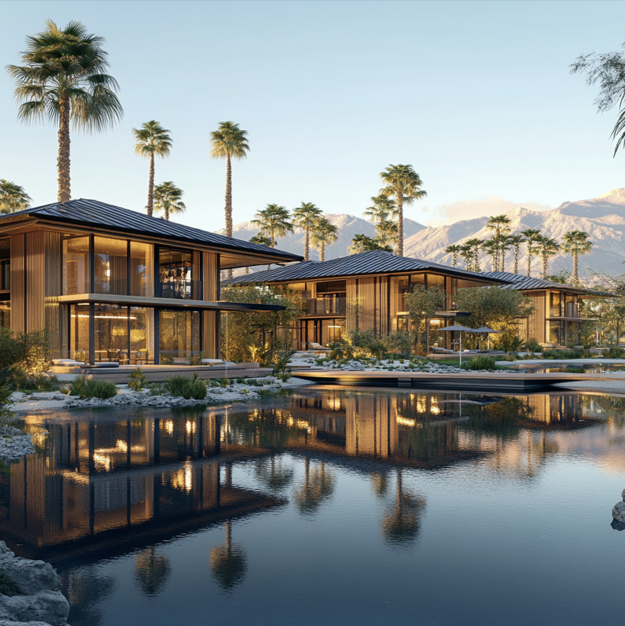Our residences are crafted with a modern, rustic luxury aesthetic, providing an elegant and private retreat that truly stands out in the Coachella Valley. Each eco-conscious villa, townhouses, and condos merges high-end living with significant upside potential.
